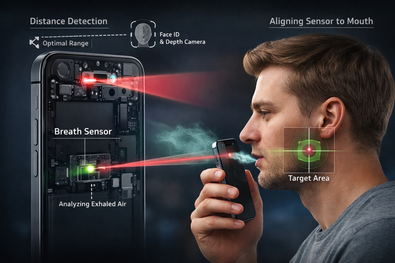 Смысл в том, чтобы правильно определить положение пользователя относительно смартфона. Для анализа дыхания это важно: если держать устройство слишком далеко, результат может оказаться менее точным. Поэтому iPhone сможет либо подсказать, что его нужно поднести ближе, либо сам скорректирует работу сенсора так, чтобы измерение проходило в правильной зоне.