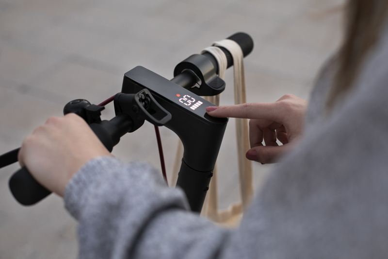 Дисплей. Позволяет отслеживать такие параметры, как скорость, заряд батареи, выбранный режим езды, и облегчает управление самокатом.