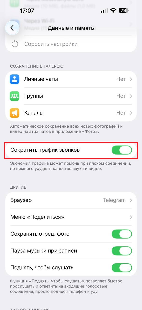 — Ещё одна полезная функция находится в том же разделе — снижение расхода трафика при звонках. Она уменьшает качество аудио- и видеосвязи, зато помогает экономить мобильный интернет. На Android эта настройка называется «Экономия трафика».