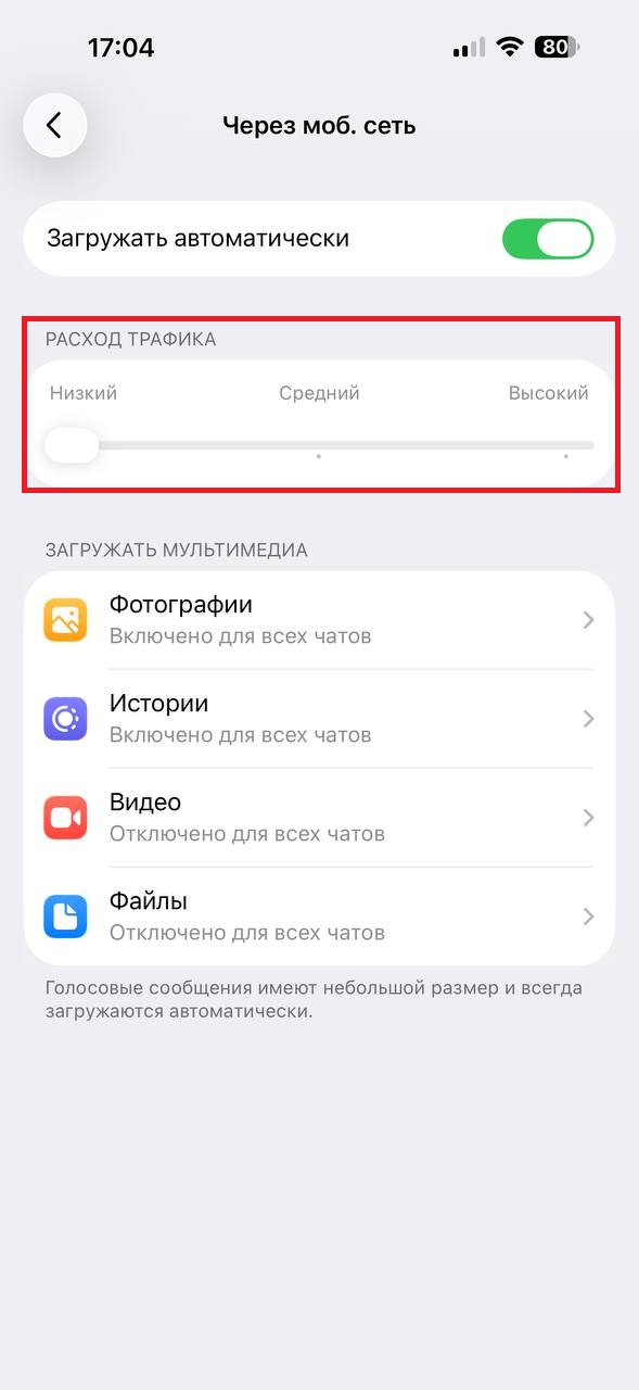 Мессенджеры позволяют отдельно настроить расход мобильного интернета. Чем меньше автозагрузка фото, видео и других вложений, тем меньше трафика тратится впустую. Даже если вы пролистываете ленту в поисках нужного сообщения, изображения и ролики по пути могут подгружаться сами, при этом обычная текстовая переписка потребляет совсем немного данных.