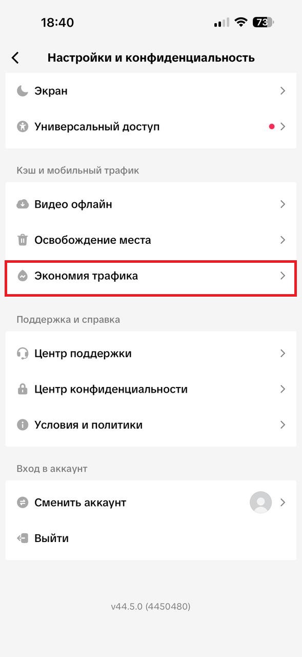 В приложении тоже предусмотрен отдельный режим, который снижает расход мобильного интернета и включается через «Профиль». В верхнем правом углу экрана нажимаем на , ищем «Настройки и конфиденциальность», листаем в самый низ до «Экономия трафика».