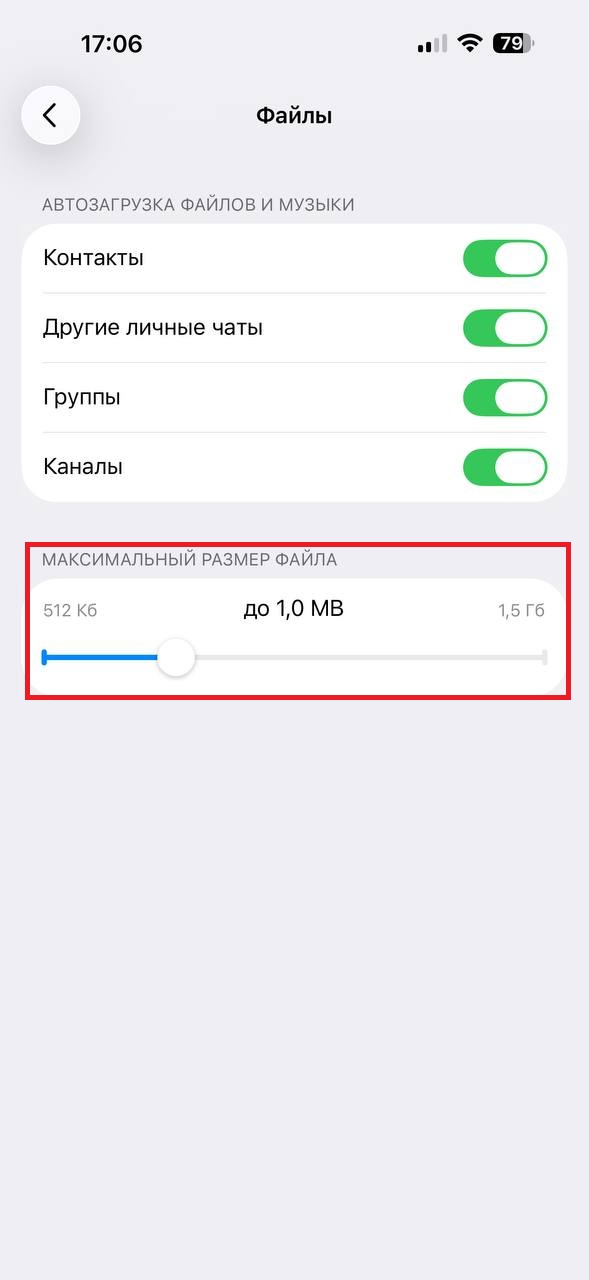 — Там же отдельно задаются ограничения для видео и файлов. Например, можно установить лимит по размеру, и тогда всё, что тяжелее заданного значения, Telegram не станет скачивать без вашего участия.
