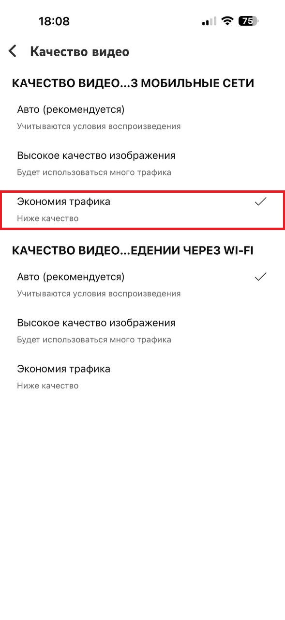 Стриминговые сервисы тоже могут очень быстро расходовать мобильный трафик, особенно если в них включено высокое качество воспроизведения или автоматическая загрузка контента. Почти во всех таких приложениях есть настройки, которые позволяют снизить расход данных.