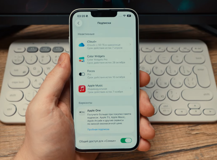 Заходим в «Настройки» далее ваше имя и «Подписки». Отмените все фирменные сервисы: Music, TV+, Fitness+, iCloud+. Дождитесь завершения оплаченного периода (подписки в сторонних приложениях отменять не нужно).