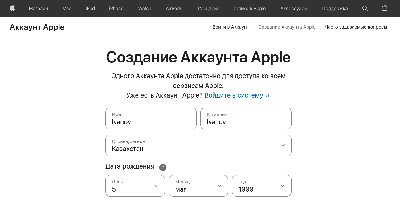 Можно создать через сайт.  Для этого необходимо перейти на appleid.apple.com, нажать «Создание Аккаунта Apple» и заполнить форму с данными нужного региона. После —подтвердить email и номер телефона (можно российский).