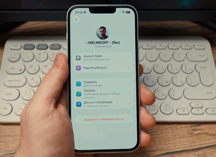 Все участники семьи должны быть в одном регионе. Переходим в «Настройки» и кликаем на ваше имя, затем «Семейный доступ / Семья». Временно покиньте группу или расформируйте её, если вы организатор. Если в семье есть дети до 13 лет, то сначала переведите их в другую группу.