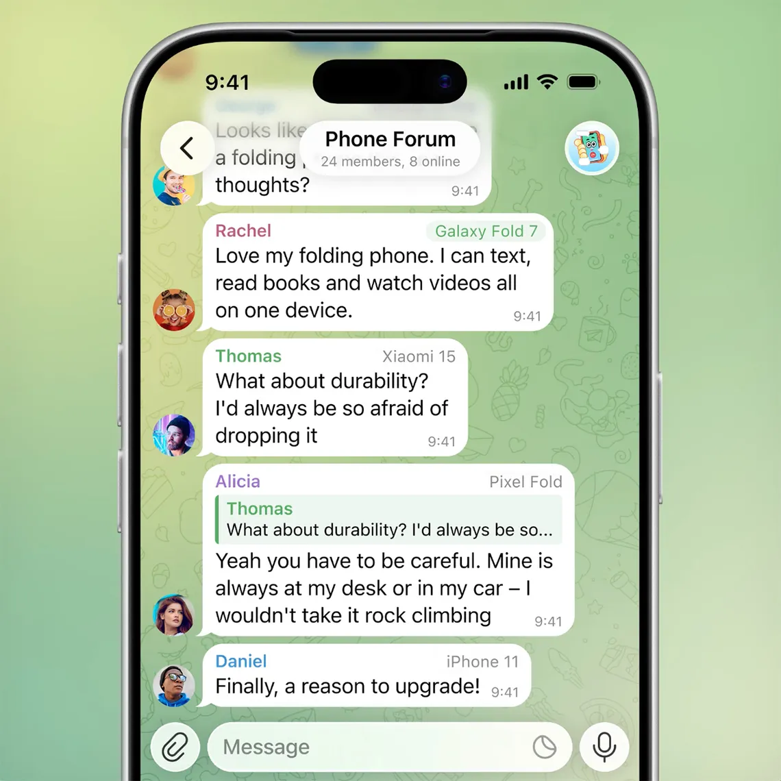 В групповых чатах появилась возможность отображать рядом с именем участника специальный тег — например, роль в команде, должность, интересы или любую другую полезную пометку для сообщества. Управлять этой функцией и настраивать добавление тегов могут администраторы чатов.